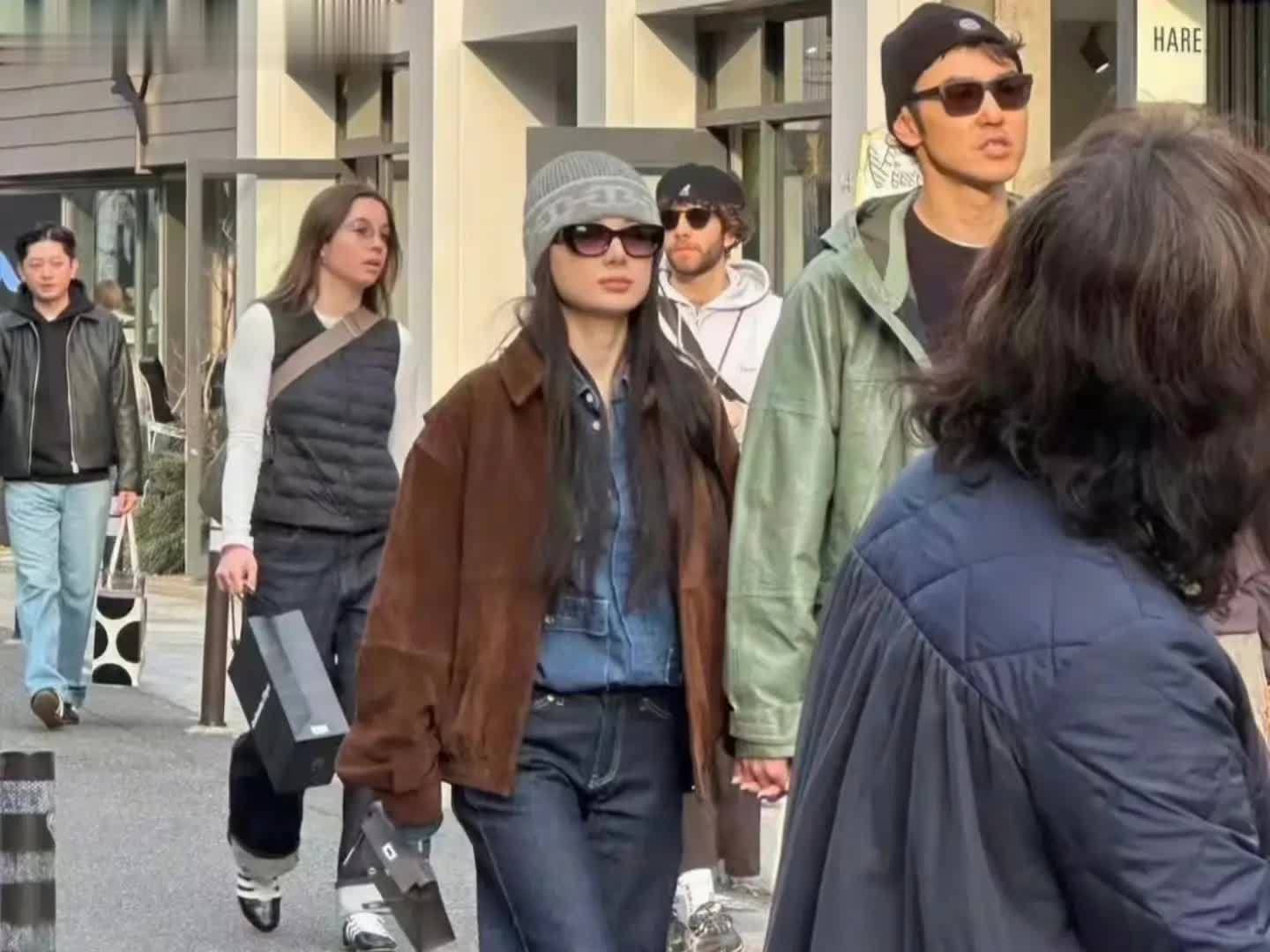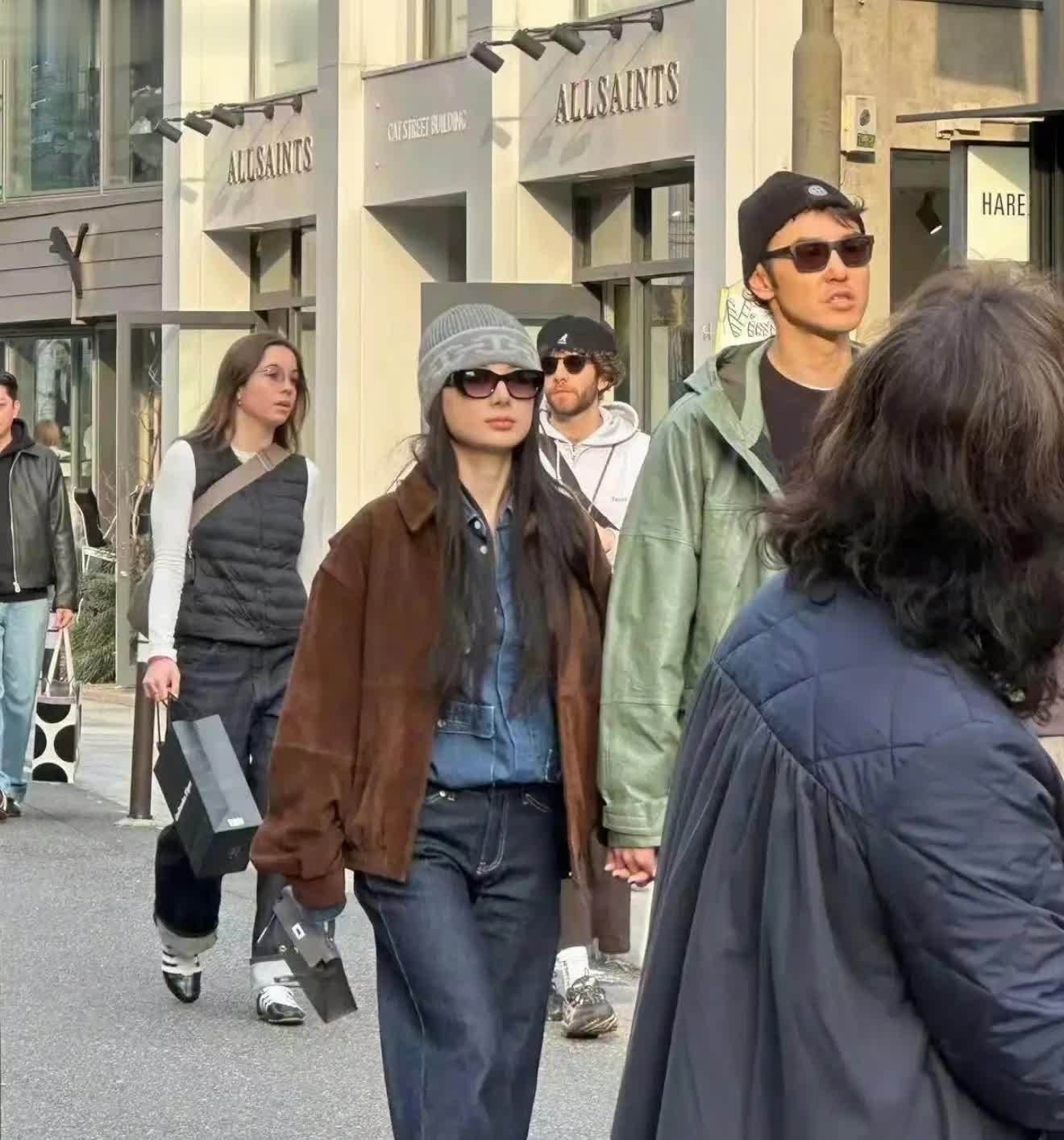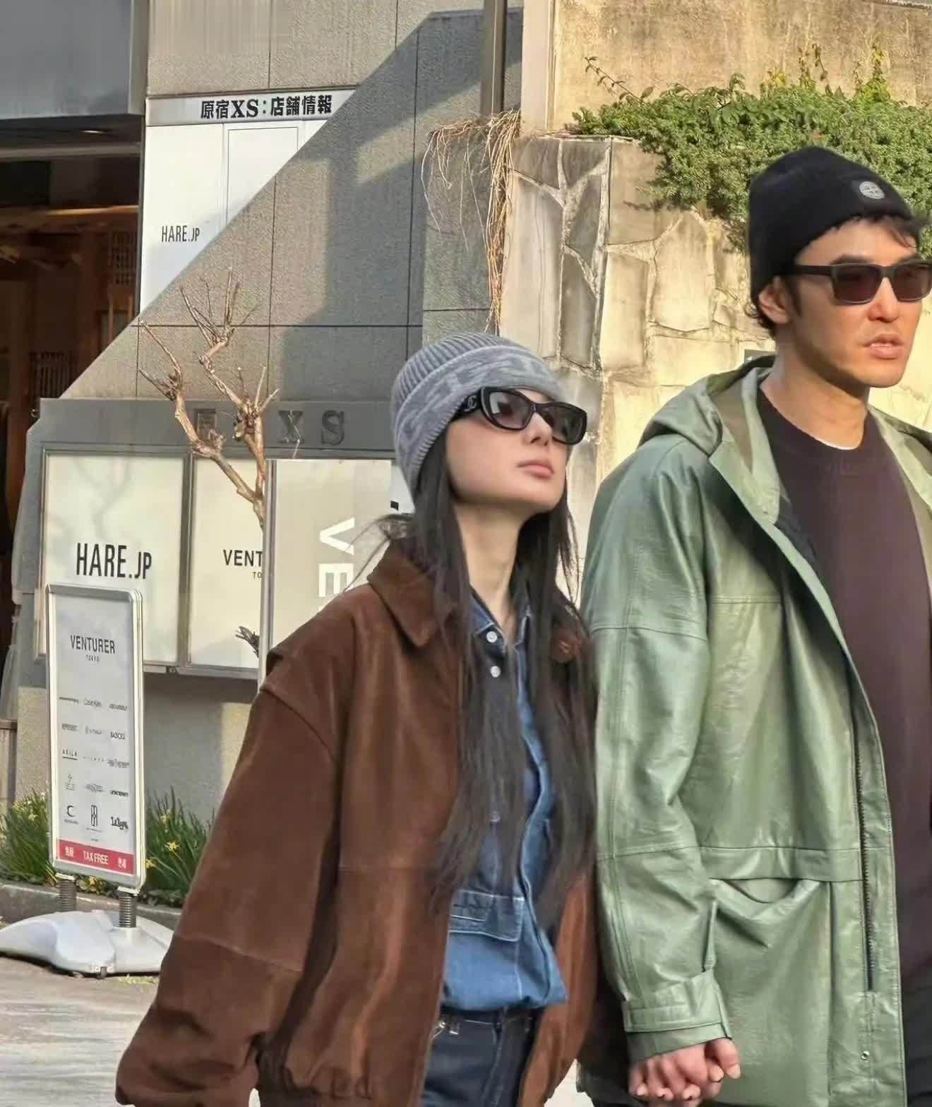 下半身搭配黑色牛仔直筒裤,手拎爱马仕包包,自信的与阮经天十指相扣走在街头,大大方方秀恩爱!